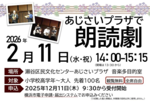 横浜市瀬谷区図書館主催『あじさいプラザで朗読劇』にソフィアの森が協力いたします。